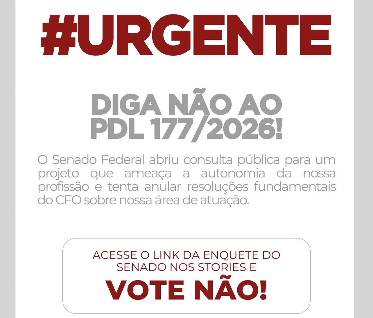 O CFO orienta os cirurgiões-dentistas a participarem da consulta pública do Senado e votarem NÃO ao PDL 177/2026, em defesa da Odontologia, da autonomia normativa e da segurança da profissão.